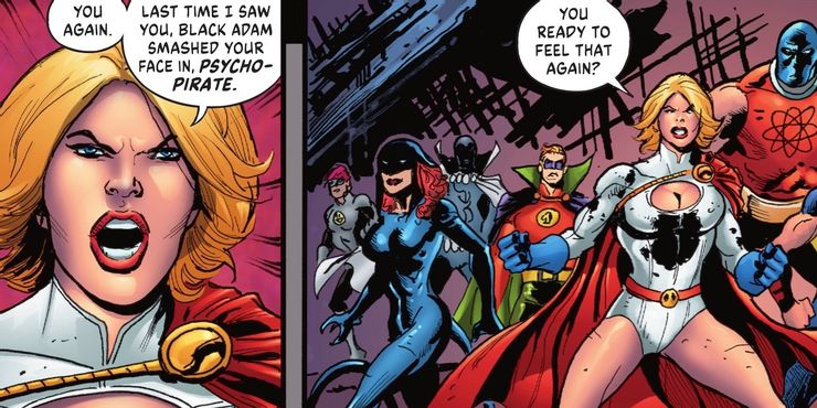 Darkseid está regresando, y el Psycho Pirate es su nuevo heraldo. En la misteriosa Tierra-Omega, varios héroes, incluida la Sociedad de la Justicia y la Justicia encarnada, han descendido sobre el planeta. Power Girl es parte del contingente de JSA, y cuando ve al Pirata, le recuerda su muerte a manos de Black Adam. Ella le recuerda al Psycho Pirate que Black Adam le rompió la cara, y si el Pirata está listo para repetirlo.
