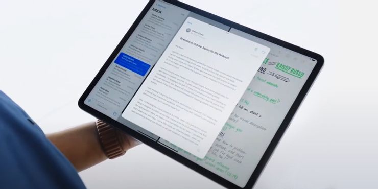La multitarea en iPadOS 15 se ha mejorado mucho, proporcionando un botón en pantalla que aparece en la parte superior de la aplicación abierta que parece una línea corta. Al tocar este control, se abrirá un menú que muestra los íconos de pantalla completa, Vista dividida y Deslizamiento. Al tocar uno entrará en ese modo. Con los dos últimos, la aplicación actual se desliza hasta el borde de la pantalla, lo que permite el acceso a la pantalla de inicio para que se pueda seleccionar cualquier otra aplicación para que se ejecute al mismo tiempo. Deslizar hacia abajo una de las aplicaciones en Split View descarta esa aplicación y permite seleccionar una diferente para realizar múltiples tareas. Algunas aplicaciones, como Mail, pueden abrir documentos en el centro de la pantalla sobre una vista dividida.