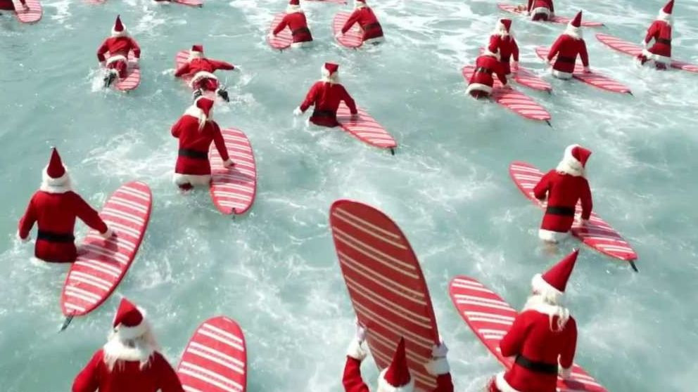A los australianos les encanta hacen diferentes actividades con motivo de la Navidad, pero lo hacen en un contexto veraniego y en la playa. Hacen muñecos de arena, Santa Claus llega a bordo de una tabla de surf para repartir regalos a los más pequeños…