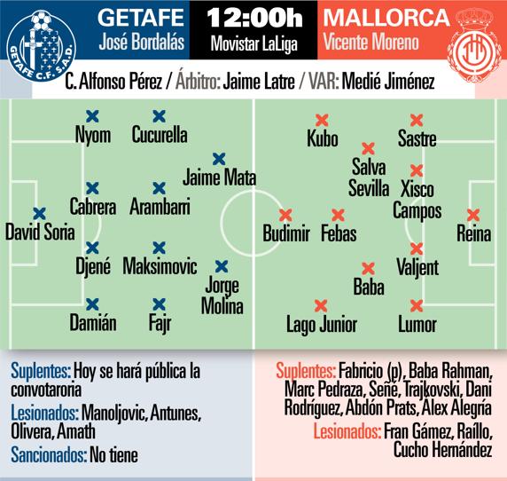 El Getafe, con la necesidad de ganar para abandonar los puestos de descenso, se enfrentará al Mallorca, que podría contar con la magia del japonés Takefusa Kubo para intentar su segunda victoria del curso.