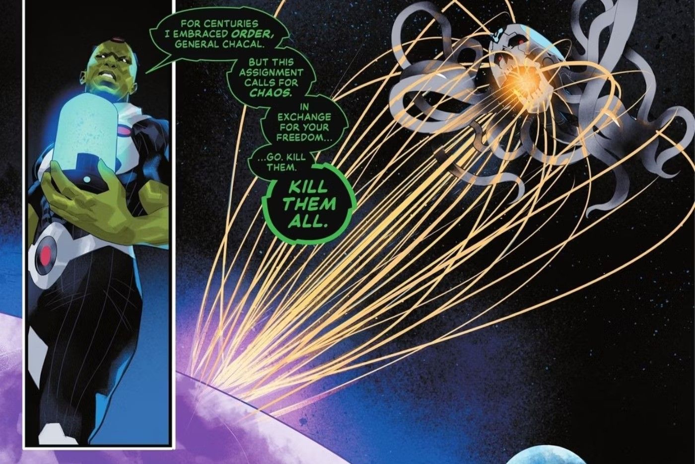 La impactante arma secreta de Brainiac fue vista en todo su esplendor en Superhombre #7 de Joshua Williamson, Gleb Melnikov, Dan Jurgens, Norm Rapmund, Edwin Galmon, Alejandro Sánchez y Ariana Maher. Después de que un número anterior revelara que Brainiac tiene la última ciudad de Czarnia, hogar de crueles zarnianos como Lobo, el villano icónico hace pleno uso de estos peligrosos alienígenas.