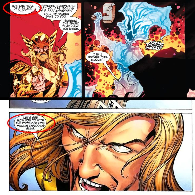 La última actualización de poder de Thor le permitió controlar el “calor de mil millones de soles”, mientras que Sentry solo tiene el poder de “un millón de soles en explosión”.