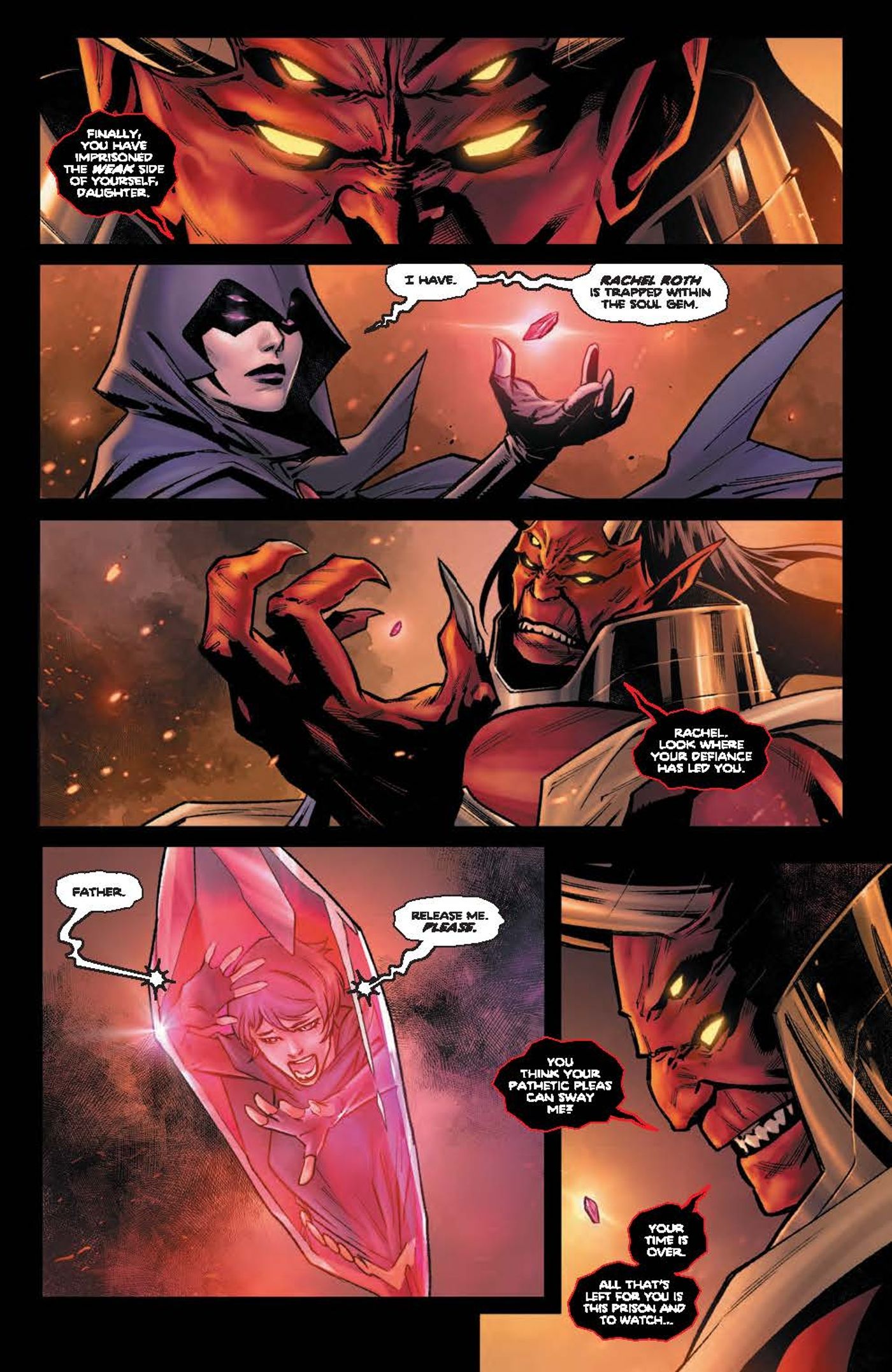 . O mejor dicho, su padre, Trigon, va a revelar algo impactante. La Reina de Alas Oscuras se acerca. La Quintaesencia sabe lo que esto significa. Y el universo temblará de miedo. El arte de Stephen Segovia y Annette Kwok para este arco luce increíble; ¡No puedo esperar a que los fans lo vean!