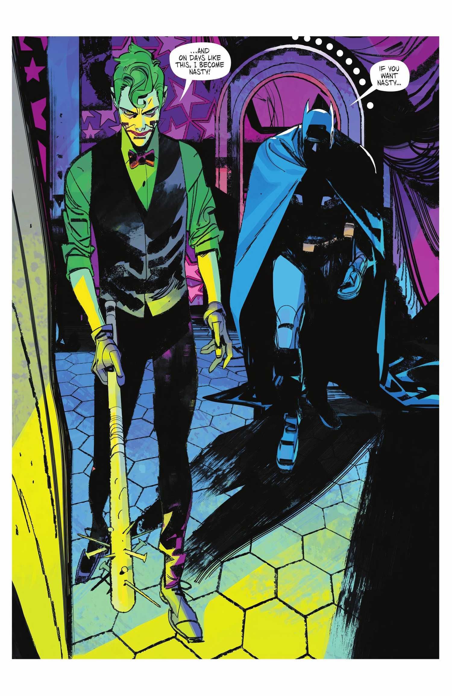 La búsqueda de Batman del Príncipe Payaso del Crimen conduce a un encuentro violento y nada sorprendente con el Guasón. Sin embargo, antes de que comience la batalla, El Caballero Oscuro pronuncia una de sus líneas más salvajes hasta la fecha: “Si quieres algo desagradable…yo puedo hacerlo.“