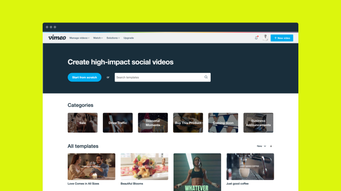 Vimeo El año pasado señaló sus planes para avanzar más en el espacio de creación y edición de videos sociales con la adquisición del editor de videos de formato corto Magisto. Hoy, la compañía presenta los resultados de su trabajo en los meses posteriores al cierre del acuerdo con el debut de Vimeo Create. La nueva aplicación incluye un conjunto de herramientas de creación de video dirigidas a pequeñas empresas y vendedores que buscan contar sus historias usando videos sociales, pero que carecen de los recursos, el tiempo o el presupuesto para invertir en la producción de videos a la escala que necesitan para competir.