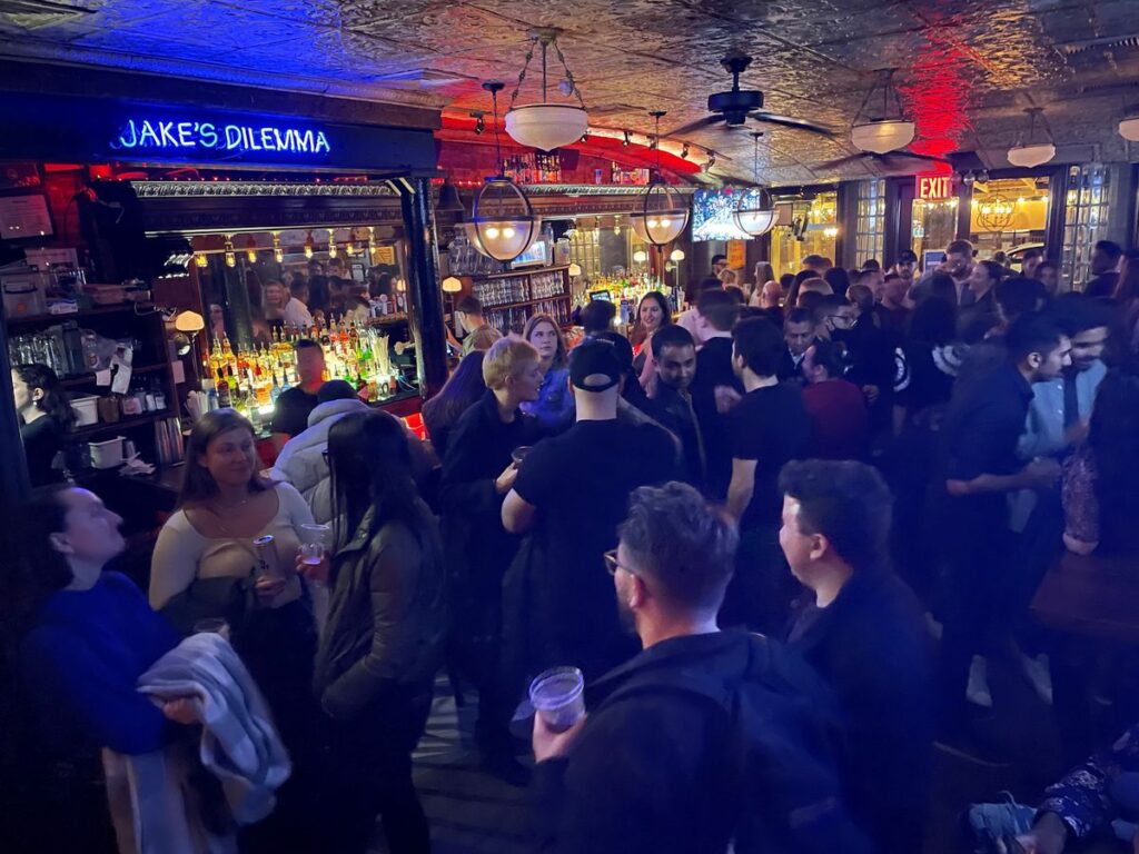 Son las ocho de la tarde en Nueva York y, como cada jueves, muchos solteros se reúnen en un bar. Esta noche la afterparty se celebra en Jake’s Dilemma, un pub de Upper West Side, el acaudalado barrio junto a Central Park donde vive al principio Miranda, de Sexo en Nueva York, y discurre parte de la trama de Gossip Girl. Es el lugar elegido esta semana por la aplicación de citas por internet del momento, Thursday, que se lanzó en 2021 en Nueva York y Londres proponiendo un nuevo paradigma en la búsqueda de pareja.