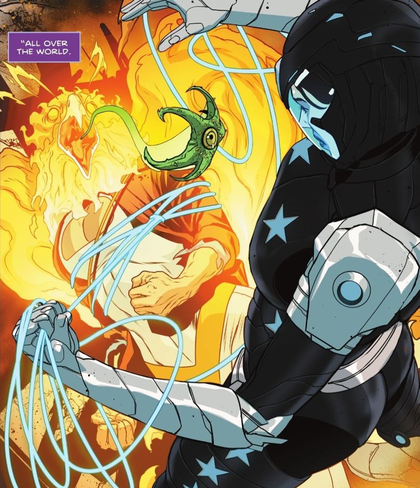 Nightwing y Cyborg también le presentan a Donna una nueva armadura hecha de metal líquido con cromo y kriptonita. Cyborg le dice a Donna que será invulnerable a la infección de esporas con el traje, sin mencionar Una pesadilla contra héroes con fuerza de nivel tamaraneano o kryptoniano..