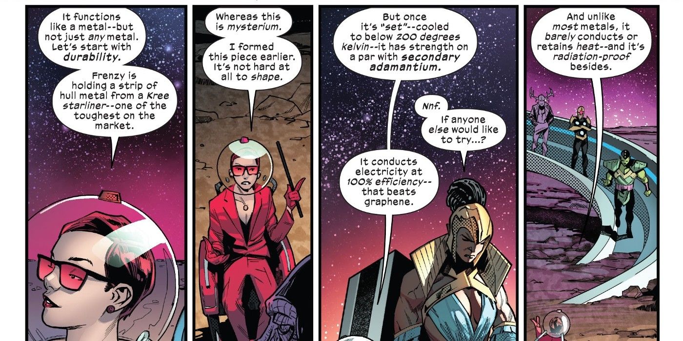 “/> Tony está trabajando increíblemente duro para crear una nueva armadura para derrotar a Feilong, pero necesita un nuevo traje patentado sobre el cual Feilong no tiene derechos… y mysterium podría ser la respuesta que está buscando. Con Krakoa superado por Orchis, Emma y Tony no pueden acceder al misterio terrestre, lo que los obliga a pensar completamente fuera de lo común. Krakoa no solo dio mucho misterio a varias civilizaciones galácticas, sino que también almacenó el metal en escondites aleatorios en todo el universo, lo que significa que Tony y Emma se dirigen al espacio para recolectar este raro material mutante.
