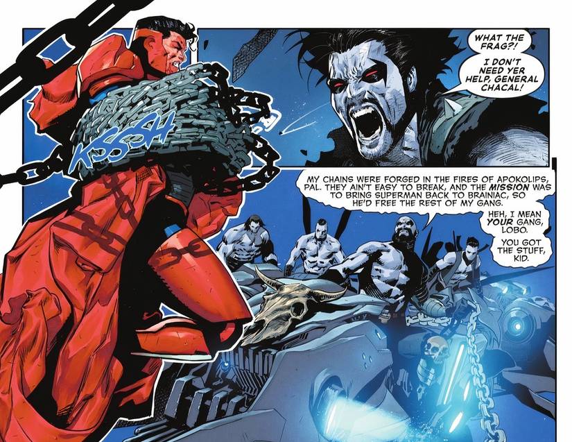 En superhombre #14 Por Joshua Williamson, Rafa Sandoval y Miguel Mendonca, Lobo ataca a Superman para que pueda demostrar que es lo suficientemente digno para hacerse cargo del ejército del general Chacal. Lobo no se detiene y Superman tampoco, pero Clark traslada la batalla al espacio exterior para mitigar el daño.