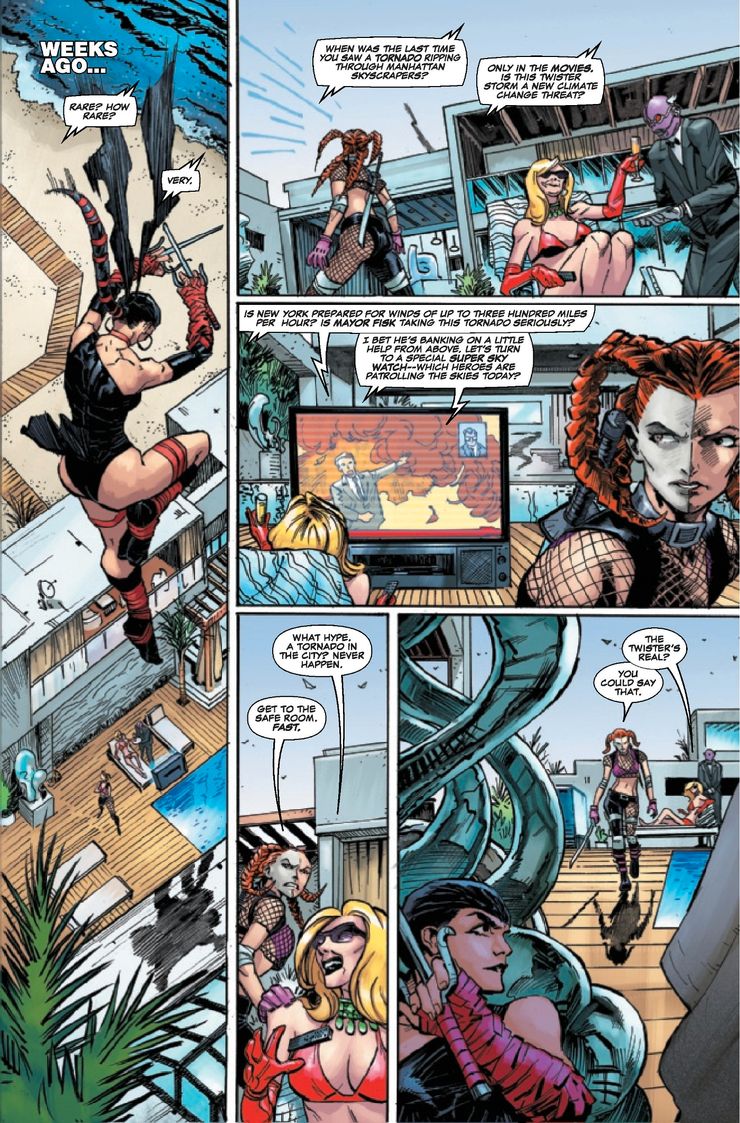 Elektra # 100cViene de la escritora Ann Nocenti y una impresionante lista de artistas que incluyen a Sid Kotian, Stefano Raffaele, Chris Giarrusso, Ty Templeton y Paulo Siqueira. Nocenti asumió las tareas de redacción en Temerario después de que Frank Miller se fue. Ella creó otro personaje femenino icónico para el título, Typhoid Mary, quien recientemente se casó con el némesis de Daredevil, Kingpin, y lo ayudó en su cruzada contra los héroes disfrazados que se muestran en la serie limitada de seis números. Reino del diablo, de Chip Zdarsky y Marco Checchetto. En una entrevista compartida por CBR.com, Nocenti expresó su felicidad por la oportunidad que le dieron de escribir una historia de Elektra vs Typhoid Mary, algo que quería hacer desde que estaba escribiendo. Temerario pero aún era tabú resucitar a Elektra. Disfruta de este adelanto de Electra #100, cortesía de Marvel Comics.