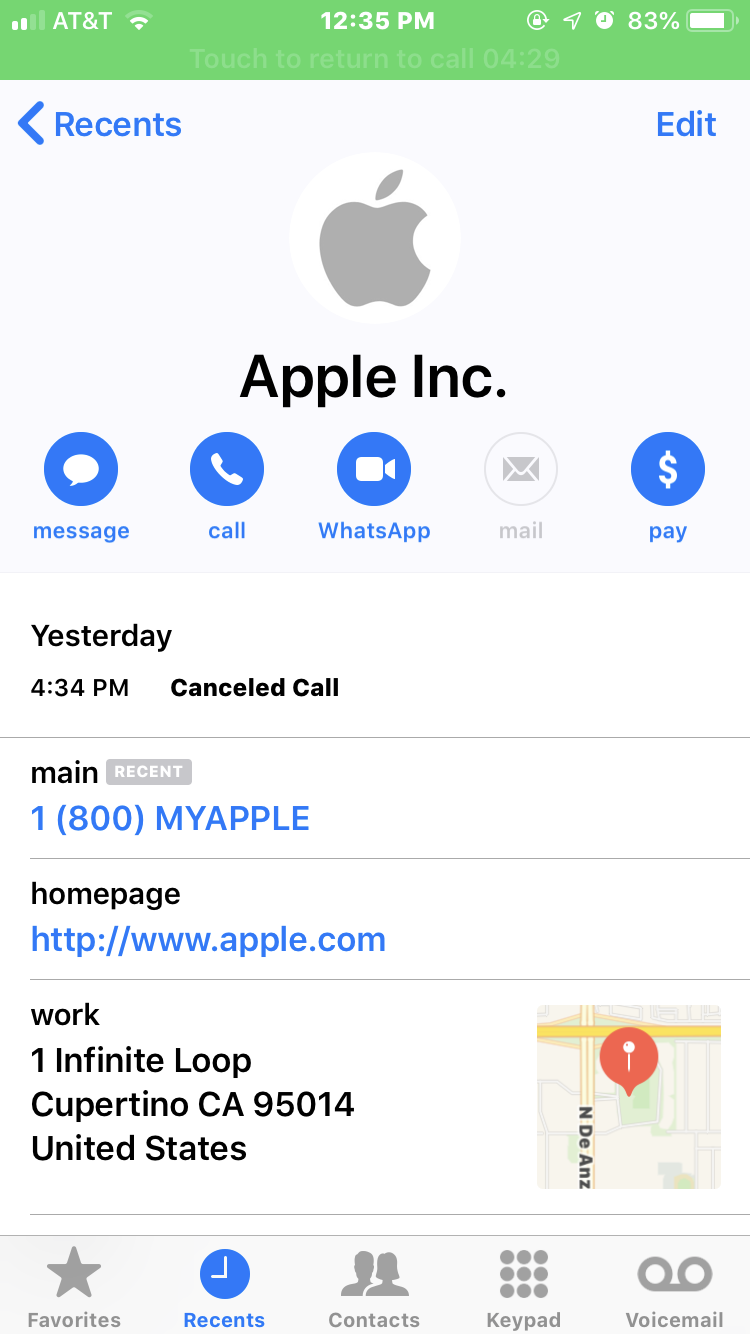 Brian Krebs informó hoy que una usuaria, Jody Westby, recibió una llamada del Soporte de Apple pidiéndole que le devolviera la llamada. La información de contacto que vino junto con el número aparecía ser Apple Inc. en la pantalla de identidad para la llamada. Cuando ella llamó al número 866, sin embargo, algo estaba claramente mal.