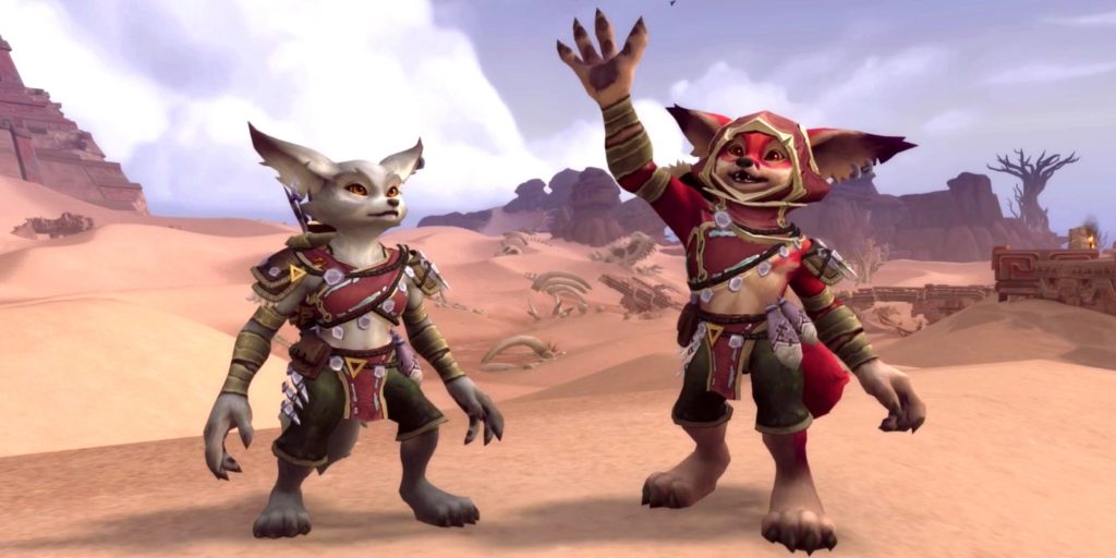 Según un informe de Kotaku, la última actualización de Mundo de Warcraft contendrá dos nuevas razas jugables para elegir. Los Vulpera, que se muestran arriba, son criaturas antropomórficas de zorros aliadas a la Horda que provienen de la región Vol'dun, introducidas en la última expansión del juego titulada Batalla por Azeroth. La otra nueva raza son los Mechagnomes, gnomos cibernéticos de baja estatura que viven en la Isla Mechagon y periódicamente reemplazan sus partes del cuerpo con maquinaria. Ambas nuevas razas se pueden encontrar en el siguiente video, junto con información adicional sobre la próxima expansión del juego.