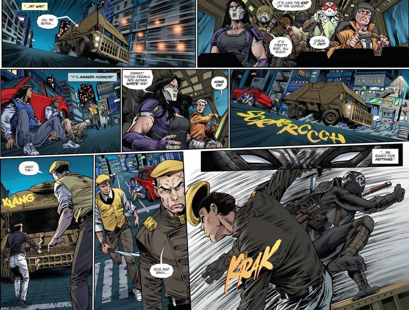 Si bien Amanda Konnor fue presentada en Re-Evolution #1, no sería hasta el segundo número que completaría su arco de “origen de April O’Neil”. El mundo de Tortugas Ninja‘s El último Ronin Actualmente, la organización criminal global controla Nueva York, donde la corrupción mundial se ha convertido en un foco de atención. A los que mandan no les gusta mucho que Amanda Konnor exponga la verdadera naturaleza de sus malvados métodos de control en la emisión nocturna del Canal 6, por lo que orquestan su asesinato durante una de sus investigaciones.
