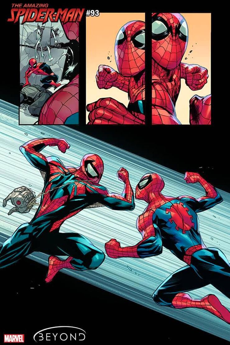 El adelanto compartido por Marvel afirma que el final de “Beyond” se verá “Peter Parker y Ben irán de web a web en una batalla devastadora. Y aunque bien puede marcar el final del tiempo de Ben como Spider-Man, puede ser el comienzo de algo más…”. Sin embargo, este “algo más” parece haber sido estropeado en la misma vista previa con la revelación de la portada variante del número de Patrick Gleason, que se parece mucho a la cara del simbionte Anti-Venom: un híbrido nacido de anticuerpos humanos y el Venom original. simbionte creado por Dan Slott y John Romita Jr. como nueva identidad para el personaje de Eddie Brock allá por 2008 en las páginas de El asombroso Hombre Araña #569.