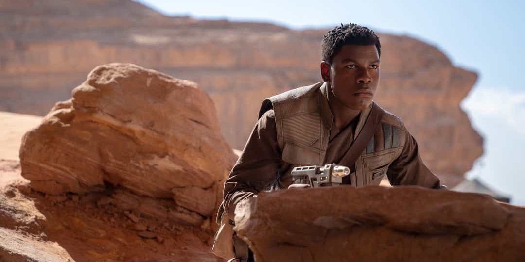 En Twitter, Boyega compartió una nueva imagen de Finn inspeccionando la escena en el desierto del planeta Pasaana. Está armado con un desintegrador, lo que indica que tal vez está buscando refugio mientras se enfrenta a una confrontación. Echa un vistazo a la imagen de arriba.