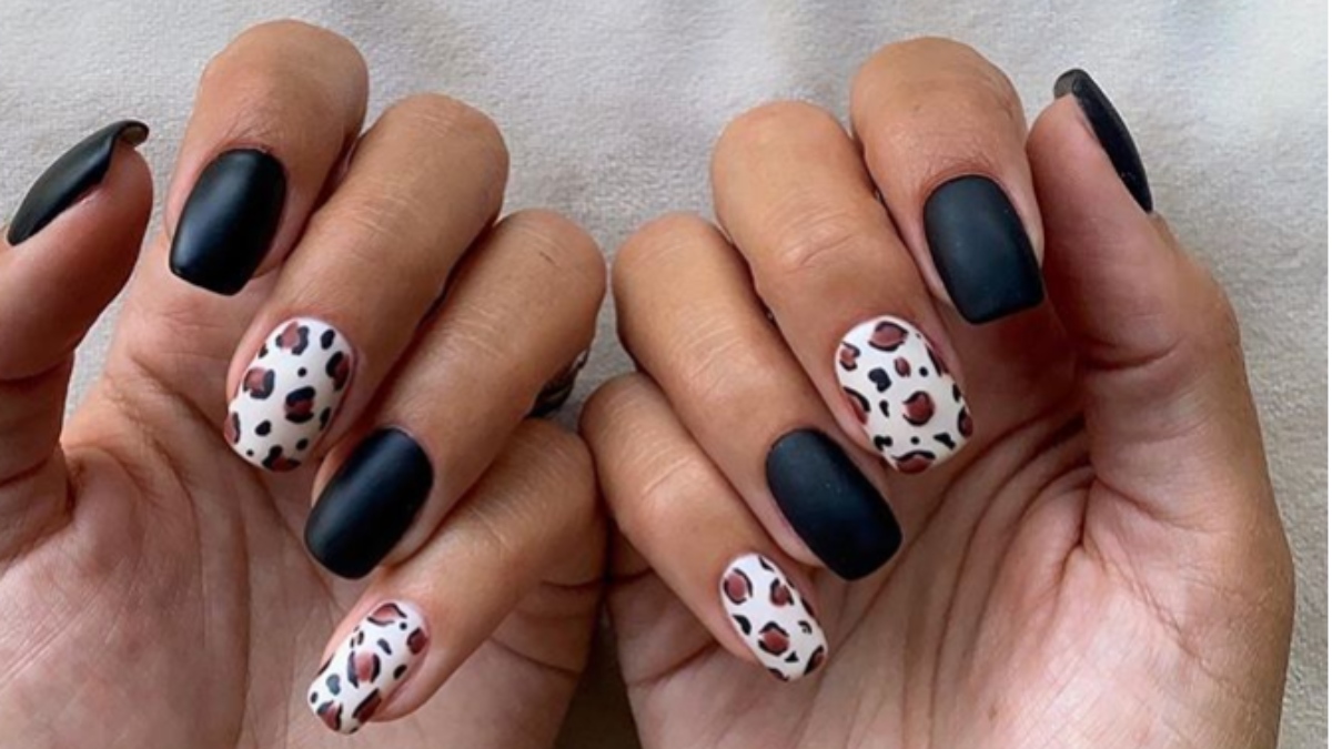 Ambas opciones son perfectas para lucir una manicura muy actual. Esta forma de alternar las uñas lisas con los estampados es una manera elegante de conseguir unas manos perfectas. No quedan tan recargadas y además le aportan un punto de originalidad. Si no somos de negro quedará igual de bien con un rojo o dorado que contraste directamente con el animal print y además nos permita tener los colores del otoño en nuestras manos.