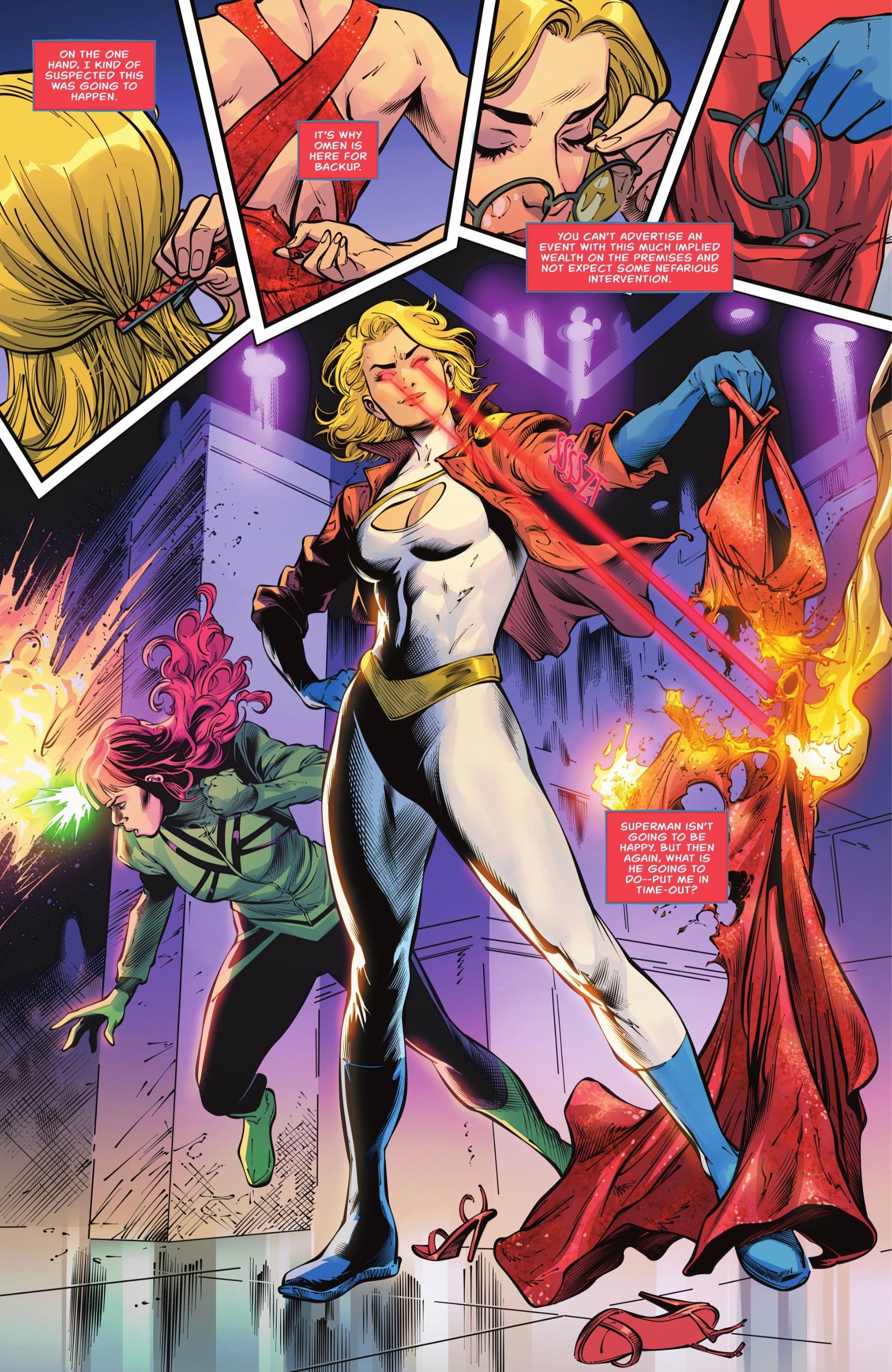 chica poderosa El número 1 está escrito por Leah Williams y dibujado por Eduardo Pansica. Power Girl, llamada Doctora Paige Stetler, está en una subasta de recaudación de fondos con Omen, quien trabaja encubierto como barman. Se pujan por artículos de toda la galaxia y las ganancias se destinarán a financiar la investigación de Steelworks. Sin embargo, la subasta atrae la atención de extraterrestres que desean liberar los artefactos, lo que obliga a Power Girl y Omen a entrar en acción. Mientras Omen ayuda a poner a la multitud a salvo, Power Girl se enfrenta al alienígena principal, que aún logra escapar de sus garras. Después de la batalla, regresan a su apartamento, donde se encuentran con Superman.