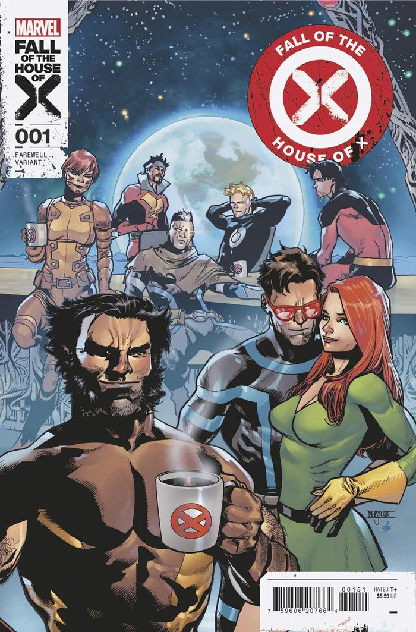 “/> La portada de Mahmud A. Asrar es un perfecto memorial de “Adiós Krakoa”, que se remonta a tiempos mejores en Krakoa, antes de que Orchis destruyera el país y obligara a los mutantes a esconderse o a declararse en guerra. El Caída de X ha visto a Cyclops capturado y torturado por Orchis, Wolverine huyendo y Jean Grey asesinado por Moira X y atrapado dentro de la White Hot Room. Antes de que el cuerpo de Jean muriera, visitó astralmente a Logan y Scott, diciéndoles a ambos que los amaba, demostrando que Jean nunca tuvo que elegir entre los dos, sino que compartió un amor único y apasionado con cada uno de ellos.
