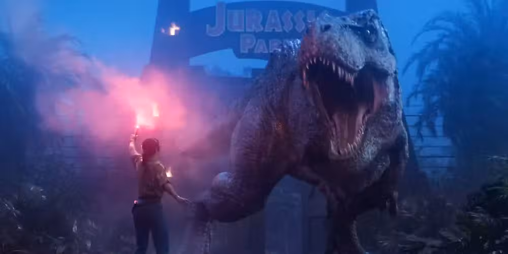 Esta escena climática es un homenaje directo al final legendario de Jurassic Park