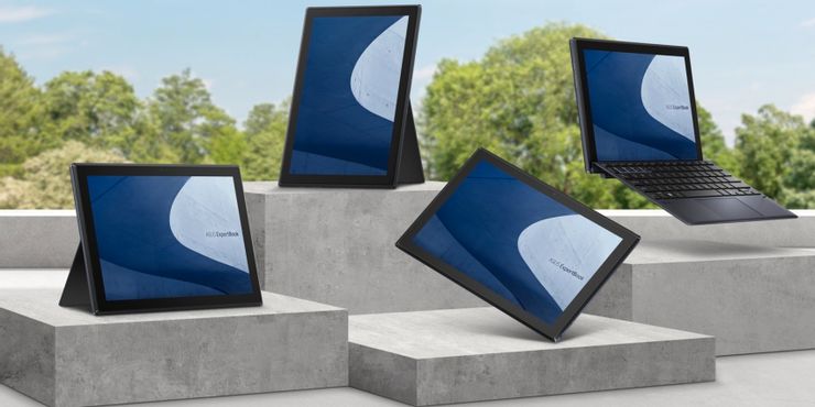 El Asus ExpertBook B3 Desmontable es una computadora con Windows 2 en 1 con un procesador Snapdragon, un lápiz óptico opcional y un teclado antibacteriano.