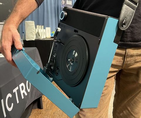 Un tocadiscos de vinilo portátil no estaba en nuestra tarjeta de bingo para Pepcom este año, pero Victrola nos sorprendió con Revolution GO, el primer tocadiscos Bluetooth portátil y recargable del mundo. Tenía muchas reservas sobre la mesa desde el punto de vista del diseño y el sonido debido a la portabilidad, pero me fui impresionado por el sonido estéreo completo de los altavoces integrados y el radiador de graves pasivo. Incluso puede transmitir un disco de vinilo a otros altavoces Bluetooth externos a través del GO. Si bien deseamos que el mango plegable tenga una forma más redondeada para el agarre, es cómodo y hay una correa para el hombro para distribuir el peso de manera uniforme por todo el cuerpo.