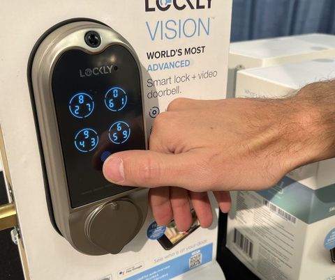 La cerradura inteligente Lockly Vision incluye una cámara de video incorporada y un escáner biométrico de huellas dactilares. Puede ver quién está en su puerta con un vistazo de la aplicación y desbloquear su puerta con un código de acceso, huella digital, aplicación, control por voz o con sus llaves originales. Durante mi demostración, no pude distinguir el código ingresado en la pantalla del teclado desde un metro de distancia gracias al software PIN Genie de Lockly. Construido para evitar picos, la pantalla del teclado cambia alrededor de la posición de los números de contraseña para que sus toques no se puedan imitar.