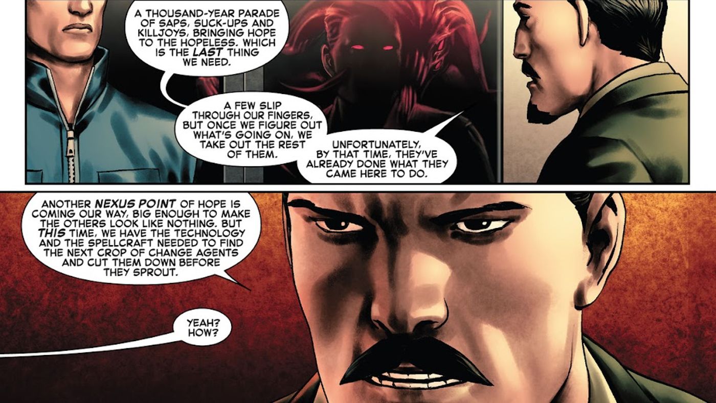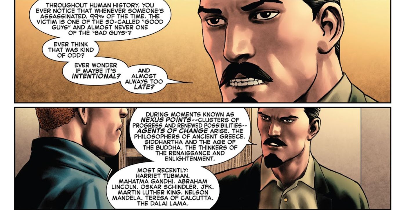 lo reciente de marvel Capitan America La serie, escrita por J. Michael Straczynski, con arte de Jesús Saíz y Lan Medina, color de Matt Hollingsworth y letras de Joe Caramagna, presenta el concepto de “agentes de cambio”, encarnaciones de una fuerza cósmica para el progreso que aparecen durante momentos de malestar o agitación masiva, aparentemente imbuidos de una especie de “energía” eterna que les permite inspirar a otros y cambiar la historia mundial en una nueva dirección.