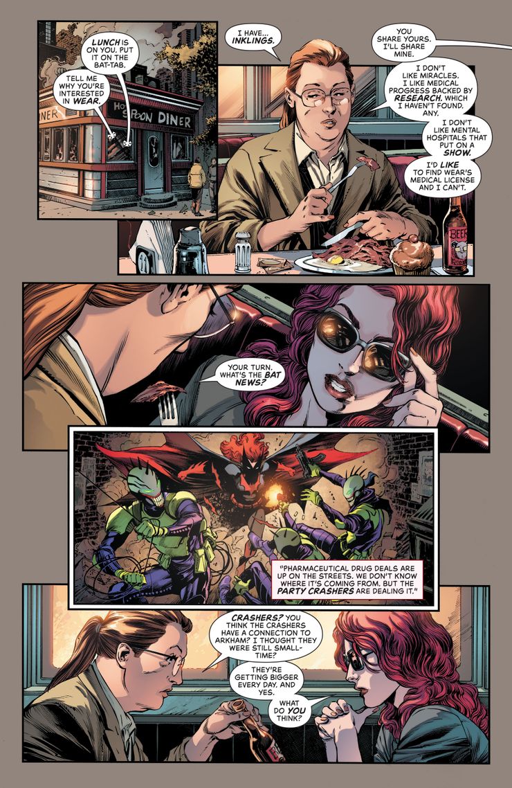 Si bien el Dr. Wear describe correctamente Arkham Asylum como una pesadilla del pasado que podría haberse evitado, ofrece Arkham Tower como el camino a seguir. En lugar de encerrar a los criminales en las afueras de la ciudad en celdas que bien podrían haber tenido puertas giratorias, Arkham Tower tiene su sede en el corazón de la ciudad, y sirve como un símbolo brillante de lo que es posible y la curación que puede proporcionar. Sin embargo, hay algunas preguntas y sospechas presentadas en la nueva vista previa, como la falta de conocimiento público de los tratamientos específicos que se utilizan junto con la licencia médica de Wear. Combinado con un círculo creciente de ofertas de medicamentos farmacéuticos en las calles, parece que la Bat-Familia ya comenzará una investigación en la Torre para asegurarse de que todo esté en alza.