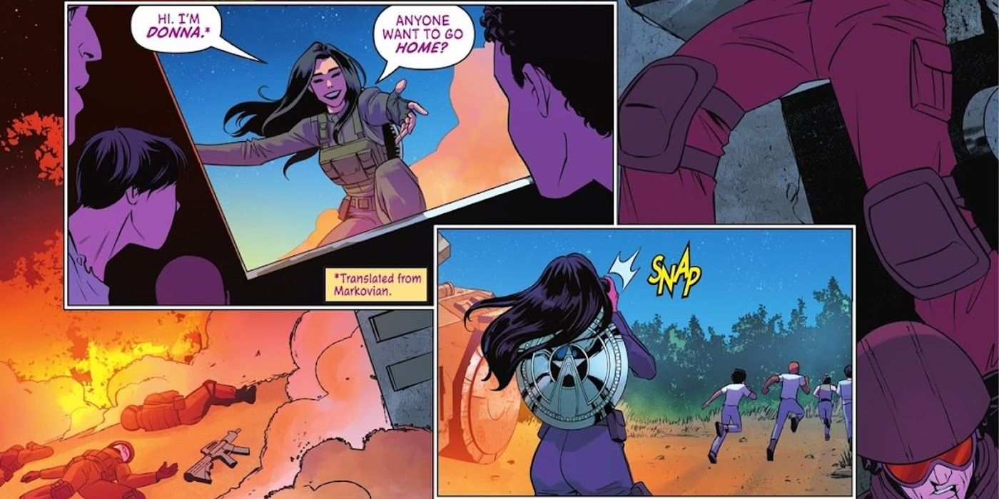 “/> La combinación del escudo y la cámara (el “arma de la verdad” de Donna, muy parecida al famoso lazo de su hermana) son un dúo potente en la batalla contra el fascismo que se infiltra perpetuamente en Markovia de DC. Donna, por supuesto, logra rescatar a los prisioneros y derribar los campos de trabajo, pero sólo por la forma en que elige empuñar estas “armas” poco convencionales, que no son objeto de violencia en absoluto. Muy parecido Capitan Americaeste ex Chica Maravilla siempre defenderá la verdad y la justicia y, con suerte, Donna Troy seguirá usando este escudo para defenderla.
