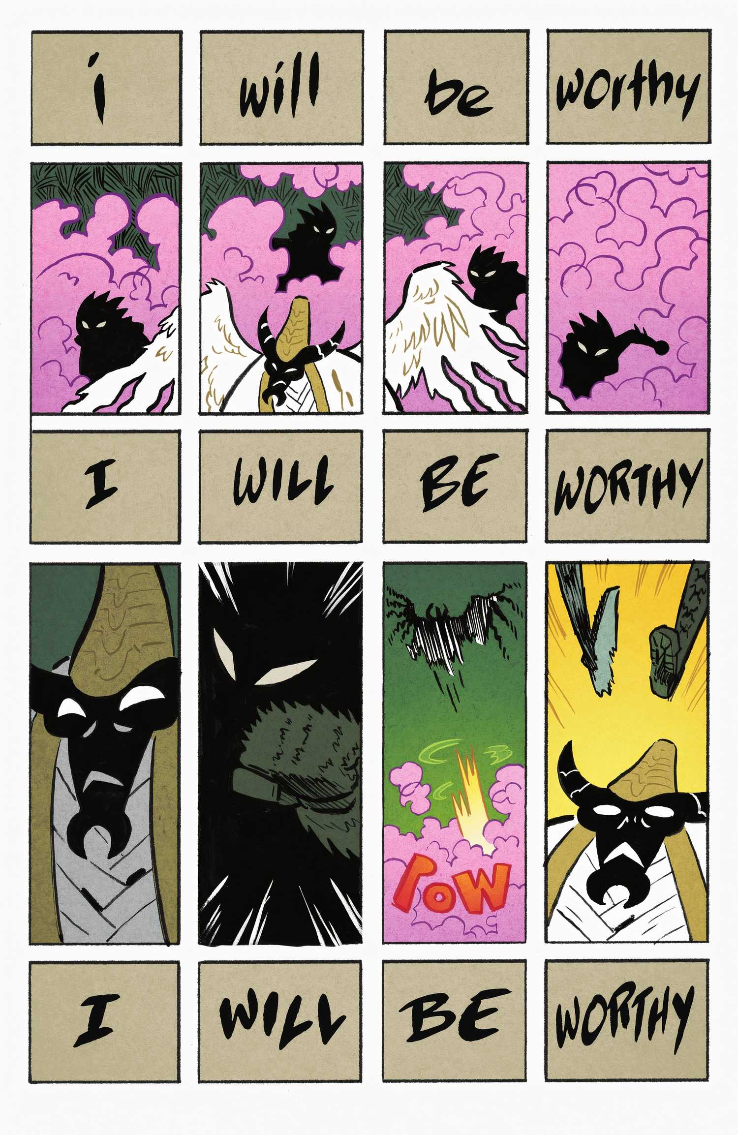 Damian cantando mentalmente “Seré digno”, surge de su creencia de que él fue responsable de convencer a Red Robin de unirse a la lucha, en lugar de que Tim se uniera por su propia voluntad y sentido de moralidad. Este malentendido, pensando que inspiró a su hermano a cambiar para mejor, revela La esperanza de Damian de que pudiera “estar a la altura de las expectativas de su padre, después de todo. Con esta nueva creencia de que no es “malo” o “débil,Damian comienza a cantar:Seré digno,” repetidamente mientras lucha contra el demonio de Ra. Esta escena es desgarradora y deja en evidencia las inseguridades de Damian.