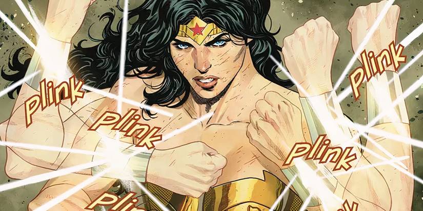La Mujer Maravilla desviando balas con sus brazaletes es una imagen icónica en la historia de la cultura pop, pero ahora se ha invertido, ya que realiza el famoso movimiento sin la ayuda de sus poderes. teniendo éxito, pero finalmente se rompió los brazos en el proceso.