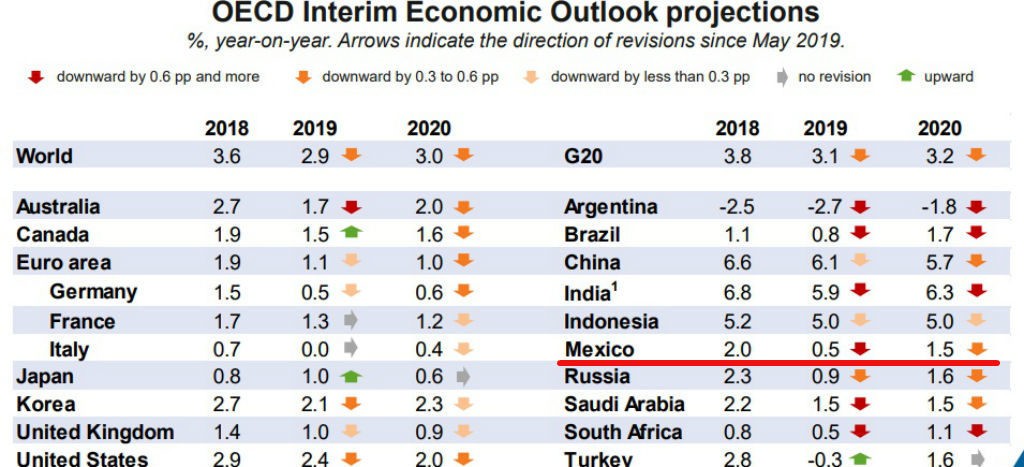 La Organización para la Cooperación y el Desarrollo Económicos (OCDE) redujo de 1.6 a 0.5 por ciento su estimado de crecimiento para México en 2019.