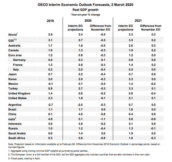 “El virus amenaza con asestar un nuevo golpe a una economía mundial que ya se había debilitado por tensiones comerciales y políticas. Es preciso que los gobiernos actúen de inmediato para contener la epidemia, sustentar el sistema de atención a la salud, proteger a las personas, apuntalar la demanda y ofrecer un salvavidas financiero a las familias y las empresas que resulten más afectadas”, dijo Laurence Boone, economista en jefe de la Organizacion.