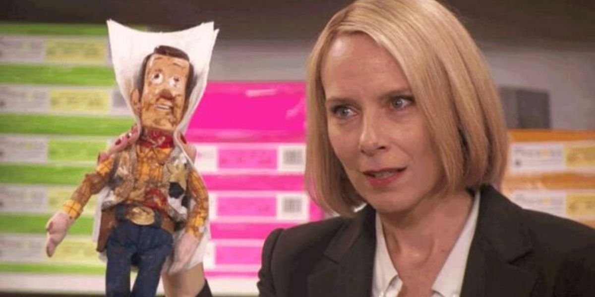 Cuando Holly regresa a Scranton para reemplazar a Toby durante unas semanas, Michael se sorprende al saber que todavía está con AJ. De hecho, en su escritorio hay una muñeca Woody de Historia del juguete eso fue un regalo de AJ. En un ataque de celos cuando Holly no está mirando, Michael arroja a Woody a la basura y le arroja café.