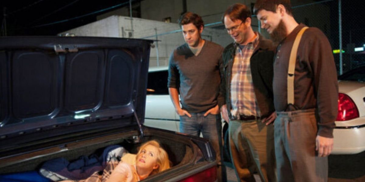 Pero cuando llaman a la cabina de las chicas, Mose irrumpe y lleva a Angela a la noche. Las mujeres obviamente están asustadas, pero resulta ser una extraña tradición de Schrute. ¡Lo que hace que la broma sea tan inquietante es que Mose metió el pequeño marco de Angela en la cajuela de su auto! Mose es raro, ¿pero secuestrar y meter un cuerpo en un baúl? Muy lejos.