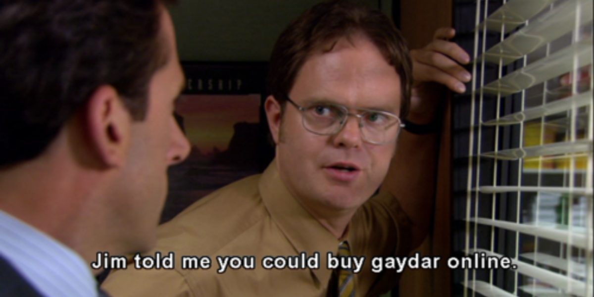 Mientras el debate sobre Oscar era gay, Dwight comenzó a preguntarse quién más en la oficina era gay. Esto es cuando recuerda que Jim le dijo que había una herramienta real que podría ayudar a alguien a descubrir si alguien más era gay: gaydar. Dwight compra el gaydar en línea (era un detector de metales) y procede a usarlo en Oscar.