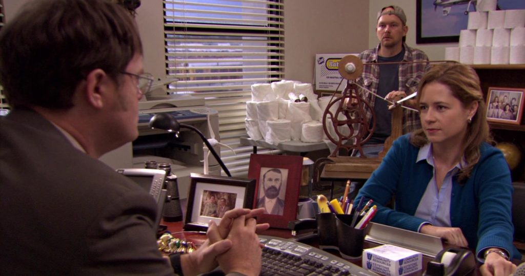 Los fanáticos son conscientes de la relación de amor y odio que Dwight tuvo con Jim (John Krasinski). A lo largo de los años, la pareja ha jugado varias bromas entre sí, desde equipos que se colocan en gelatina hasta hacerse pasar por otros. Proporcionó bastante entretenimiento.