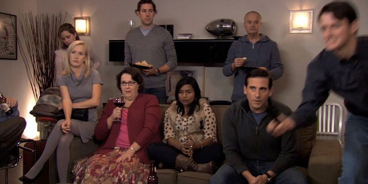 En “Viewing Party”, un episodio totalmente dedicado a los compañeros de trabajo que ven Alegría a pesar de que a la mitad de ellos no les importaba nada, muchos de los empleados estaban en desorden cuando Jim cambió el canal para ver deportes brevemente. Hubo un montón de gritos, predominantemente de Kelly.