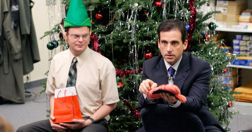 Encabezando la lista está el episodio inaugural de la "Fiesta de Navidad", en el que Michael cambia "Secret Santa" en un intercambio de regalos de elefantes blancos más competitivo. Esto causa todo tipo de problemas, con Dwight terminando con una tetera que Jim llenó con recuerdos de Pam – Ryan terminó con una placa de identificación floreada que dice "Kelly" – y Pam terminó con el iPod que Michael originalmente había pensado para Ryan.