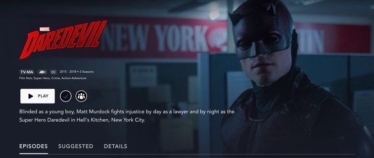 El 16 de marzo de 2022, Temerariojunto con el resto de lo que ahora se llama Defensores saga, estuvo disponible para transmitir en Disney+ con una página de series muy interesante. En lugar de presentar a Matt Murdock como Daredevil, la página mostraba a Benjamin Poindexter, más conocido por su villano alter-ego Bullseye, con el traje del hombre sin miedo. Desde entonces, Disney+ ha actualizado la página de inicio, cambiándola para mostrar una imagen de Matt Murdock. Los espectadores pueden acceder a esta página, así como a las páginas de cualquiera de las otras series del Defensores saga, al optar por cambiar sus cuentas de Disney+ para mostrar contenido de TV-MA en lugar de mantenerlo configurado para mostrar solo contenido de TV-14 como estaba configurado originalmente. Mira la imagen de la imagen original a continuación: