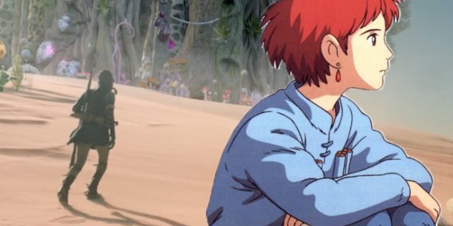 Arriba, el teaser corto comienza con una toma amplia de Nausicaa desde la parte posterior. La heroína se ve caminando por un paisaje desértico que termina en un fantástico bosque. A medida que el tráiler continúa, a los fanáticos se les muestra más de la bella y áspera configuración del plomo, y termina con Nausicaa huyendo de un enorme insecto.