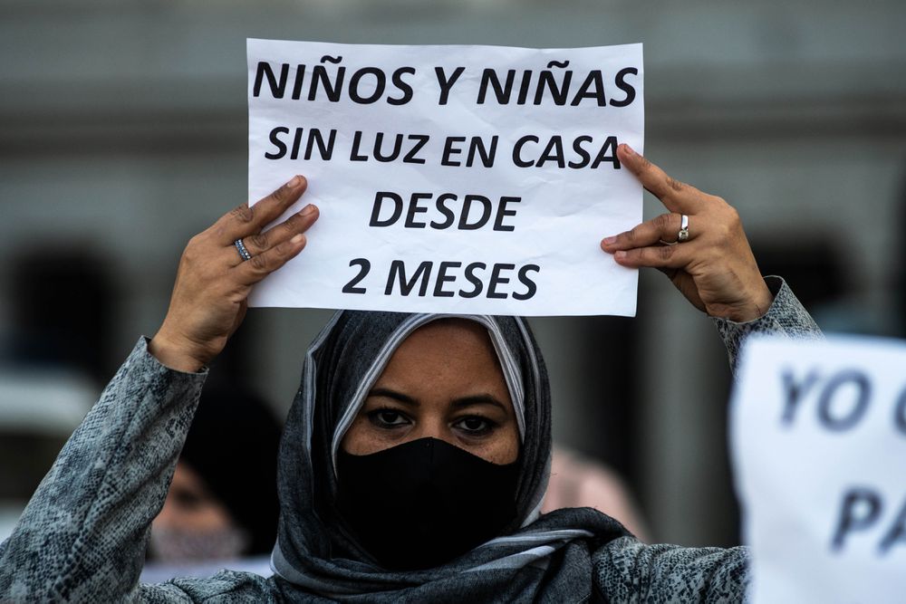 Una vecina de la Cañada Real protesta contra la falta de suministro eléctrico esta semana.Marcos del Mazo / LightRocket via Getty Images