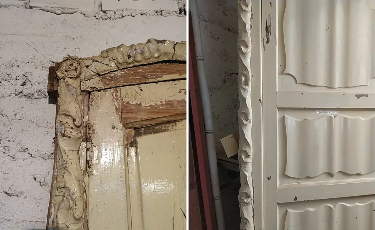Las puertas presentan, en general, un mal estado de conservación. Tres son macizas y conservan el marco con los clavos que las sujetarían a las paredes y las decoraciones de forma orgánica de yeso típicas de Gaudí. Dos de ellas, incluso, conservan tiradores ergonómicos de metal como los que el arquitecto ponía en sus puertas. El experto que las estudie tendrá que analizar todos estos elementos, pero seguramente también tendrá que acabar decapándolas ―quitando la capa de pintura que las cubre― para ver cómo es el encaje de las maderas, algo crucial.