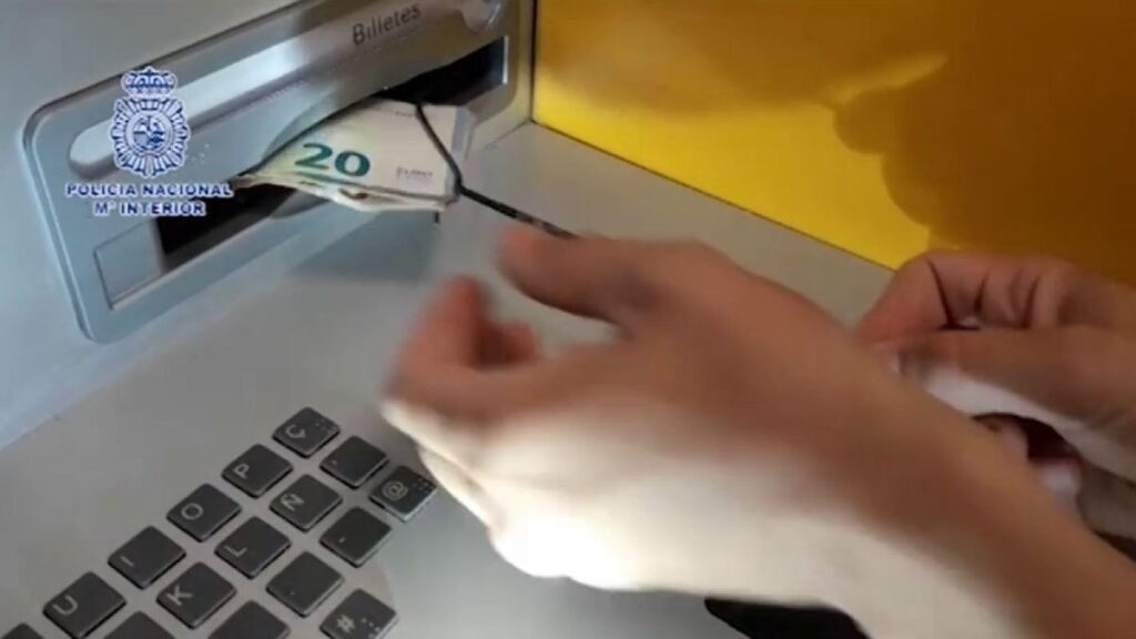 A continuación, los criminales solicitaban un reintegro de esa misma cantidad en los cajeros automáticos con tarjetas bancarias sustraídas a terceros. Luego, introducían una especie de gancho metálico en el momento de salida de los billetes para capturarlos.