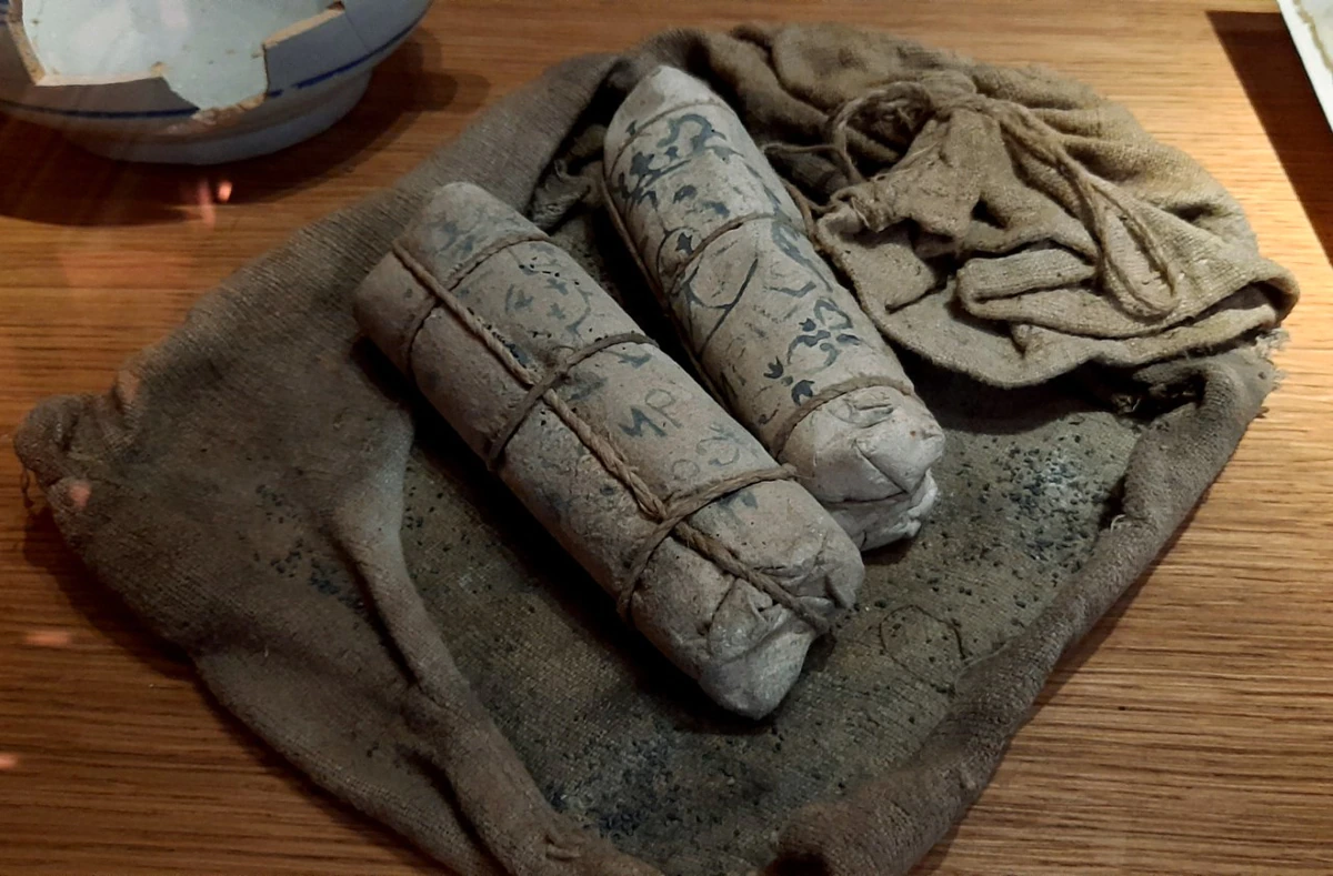 En el invierno de 2017, durante los trabajos de consolidación de tres edificios históricos y una nave industrial en el casco urbano ―la Comunidad de Madrid lleva más de dos décadas restaurando el conjunto, que está declarado Bien de Interés Cultural―, unos operarios hallaron la bolsa y la abrieron. Dentro descubrieron un paquete envuelto en tela y papel que contenía cartuchos y un polvo negro que no supieron reconocer. De hecho, arrojaron el polvo a la fogata que habían encendido para calentarse. Para su sorpresa, se produjo una pequeña explosión.