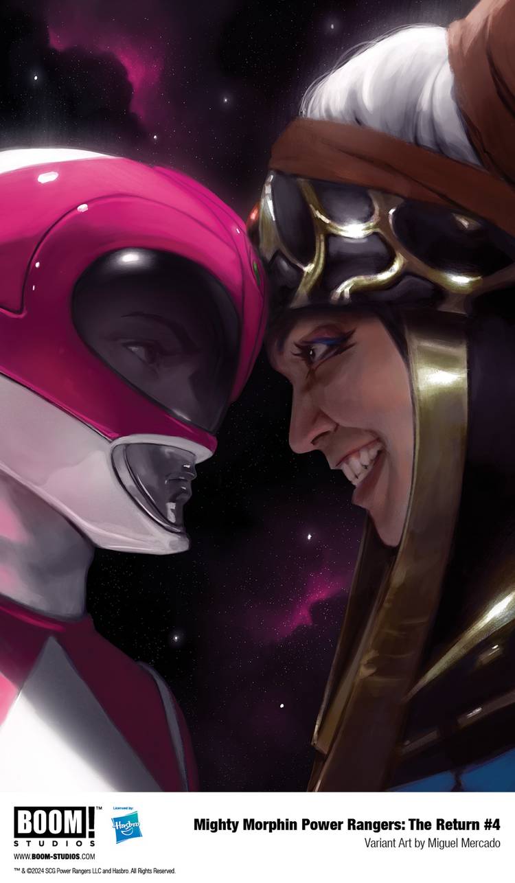 Portada variante de Miguel Mercado para Mighty Morphin Power Rangers: El regreso #4 de Amy Jo Johnson, Matt Hoston y Nico Leon revela Rita Repulsa se enfrenta a alguien que podría ser su rival más odiado: Kimberly Ann Hart, también conocida como la Pink Ranger original.. La portada del cosplay se puede ver a continuación.
