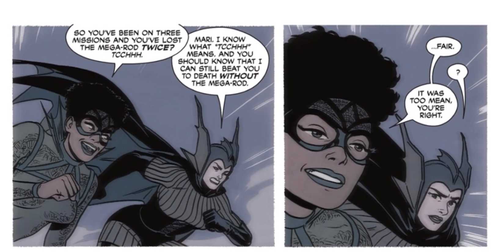 El Mega-Rod no sólo puede crear fuertes ataques de energía y explosiones de conmoción, sino que también puede actuar como un dispositivo de teletransportación. Puede crear tubos boom estilo Apokolips, que ayudan a Big Barda y sus aliados a viajar años luz en un instante. A medida que las Aves de Presa entran en territorio desconocido y son arrojadas a mundos desconocidos, es fácil ver por qué el misterioso villano querría separar a Barda de esta poderosa arma. Sin embargo, Barda proclama audazmente que no necesita que la Vara sea una amenaza mortal. por derecho propio.