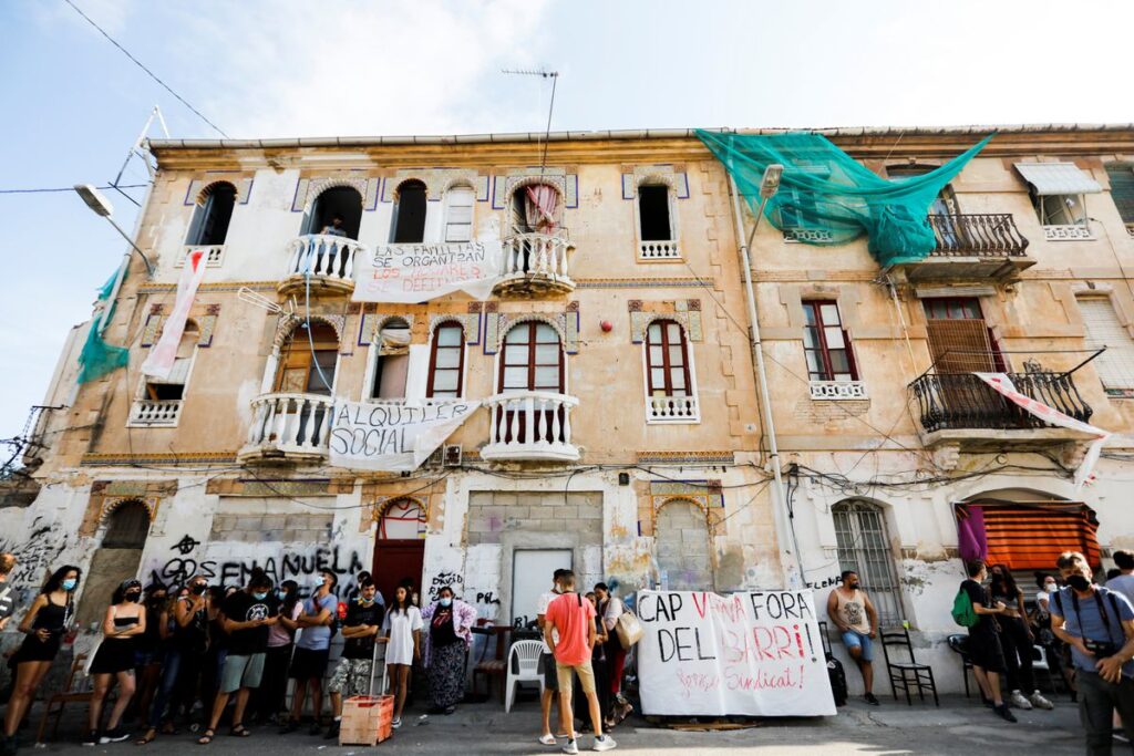 Jesús Cloquell, miembro del sindicato vecinal que pide ser también interlocutor con las administraciones, explica: “Hemos conseguido parar el desalojo y aplazarlo 10 días. Ganamos tiempo pero no es una solución definitiva. Servicios Sociales ofrece ayudas a las familias para el alquiler [además de ayudas para la manutención]. Se reunirán el Ayuntamiento y la Generalitat para buscar una solución”. Ese plazo de 10 días ha sido posible porque las casas “están en riesgo, pero no en riesgo inminente”, añadieron, tras la inspección de los bomberos. Entre las consignas escuchadas: “Despierta vecina, desahucian en tu puerta”.