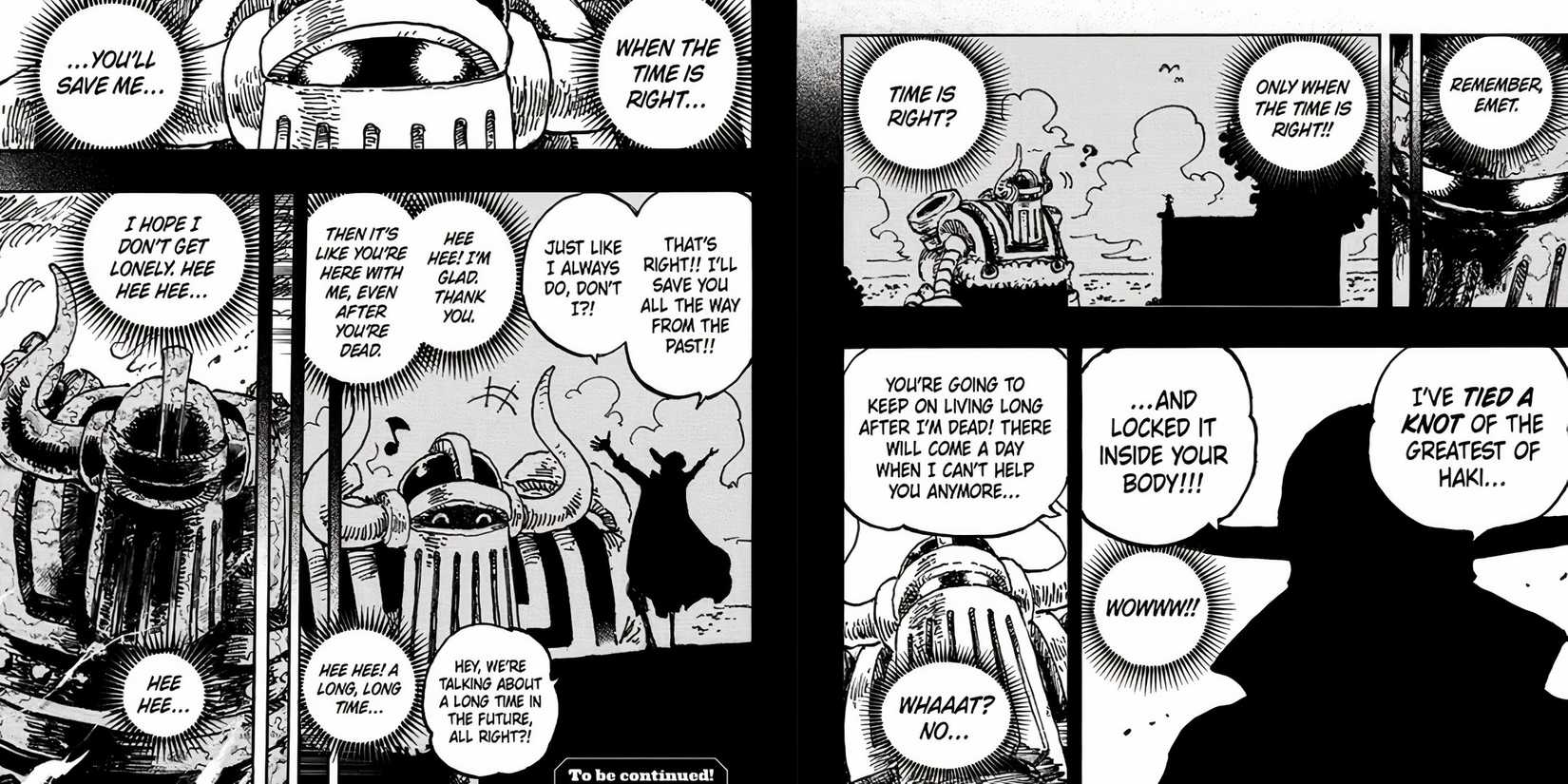 Sin embargo, la mayor revelación del capítulo es que Joyboy parece ser bastante alto en comparación con Emet, pareciendo tener casi el mismo tamaño que la cara del robot gigante. Esto finalmente confirma que el El sombrero de paja gigante escondido en Mariejois puede ser en realidad el de Joyboy. ya que parece tener el tamaño perfecto para alguien de su tamaño. El último capítulo también podría ser la clave para descubrir finalmente la verdadera identidad y raza de Joyboy y si realmente era un gigante o un bucanero como han especulado los fanáticos.