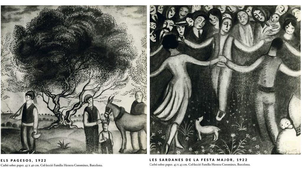 En 1922, Coromines pide a un jovencísimo Dalí, que apenas tiene 18 años, pero ha expuesto ya por primera vez obra en las galerías Dalmau de Barcelona, que ilustre una nueva edición de su libro de prosa poética. El pintor le escribe dos cartas en septiembre. “Me place manifestarle que los cuatro temas que he escogido son los siguientes: Els burrus de Viure, Les Sardanes de la festa major, El vi ranci, Els pagesos. Le ruego tenga la bondad de comunicarme, así que lo tenga decidido, la forma y el tamaño en que debo hacer los dibujos. Quedo a sus órdenes”. En otra misiva posterior, expresa su interés por el proyecto: “No puede imaginarse con qué amor y con qué ilusión estoy dibujando los ninots para la ilustración de su libro”.